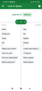 Let us now understand how this app works. This app has pre-written phrases that are commonly used. You can move your eyes toward the left or right to select the desired phrase. As soon as you move your eyes the desired phrase will be selected and the app will speak the phrase louder. If you move the eyes upwards it will be snoozed. You can take rest at particular intervals by moving your eyes upwards when you get tired.